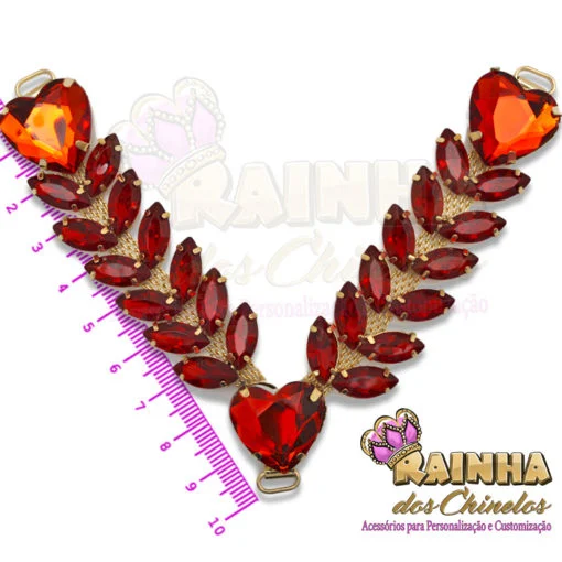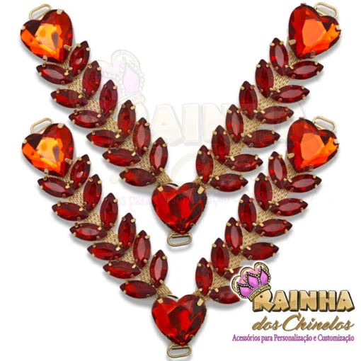Cabedal em V Folhas Coração Vermelho. Crie modelos maravilhosos!