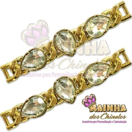 Cabedal ABS Lateral Dourado Chaton Cristal