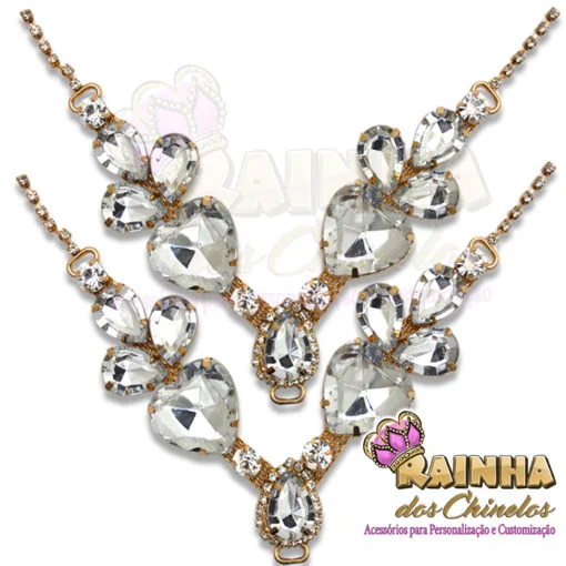 Cabedal de Luxo Corações e Chatons Cristal para Customizar e Personalizar Chinelos, Sandálias e Artesanatos em Geral. Crie modelos lindos, delicados e diferentes!