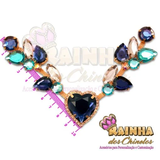 Cabedal em V Aedra Corações Azul Marinho 1ª Linha. Crie modelos maravilhosos!