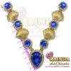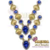 Cabedal em V Conchas Douradas Chaton Azul Royal