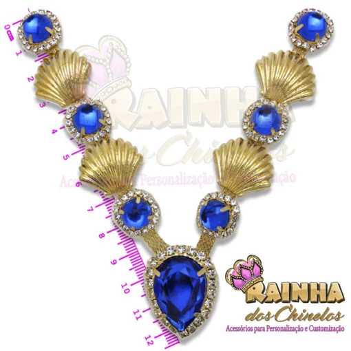 Cabedal em V Conchas Douradas Chaton Azul Royal para Customizar e Personalizar Chinelos, Sandálias e Artesanatos em Geral. Crie modelos lindos, delicados e diferentes!