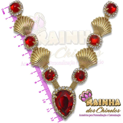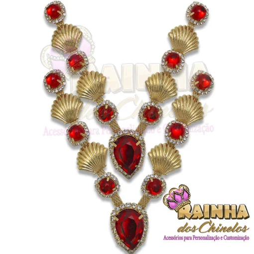 Cabedal em V Conchas Douradas Chaton Vermelho