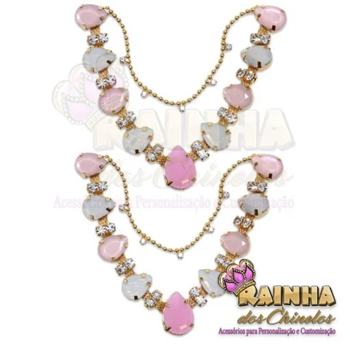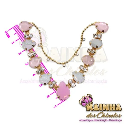 Cabedal em V Correntinha Baby Rosa Leitosa 1° linha