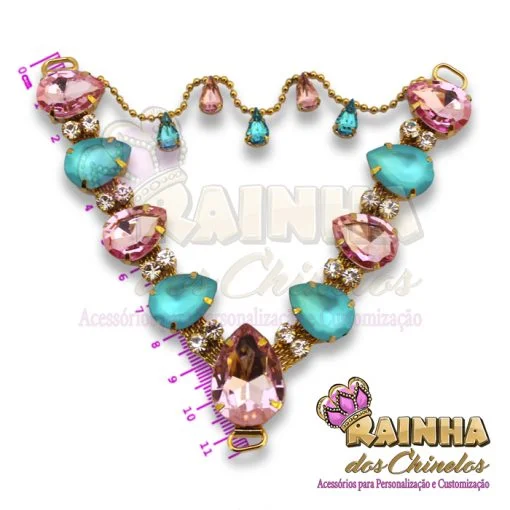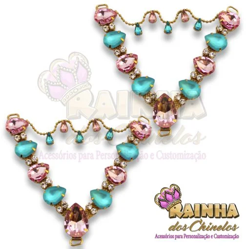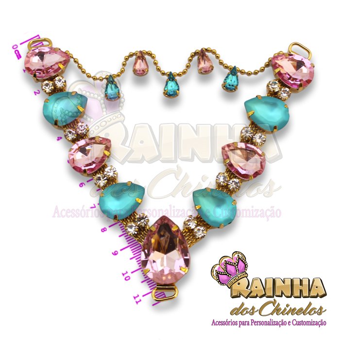 Cabedal em V Correntinha Eliane Azul e Rosa para Customizar e Personalizar Chinelos, Sandálias e Artesanatos em Geral. Crie modelos lindos, delicados e diferentes!