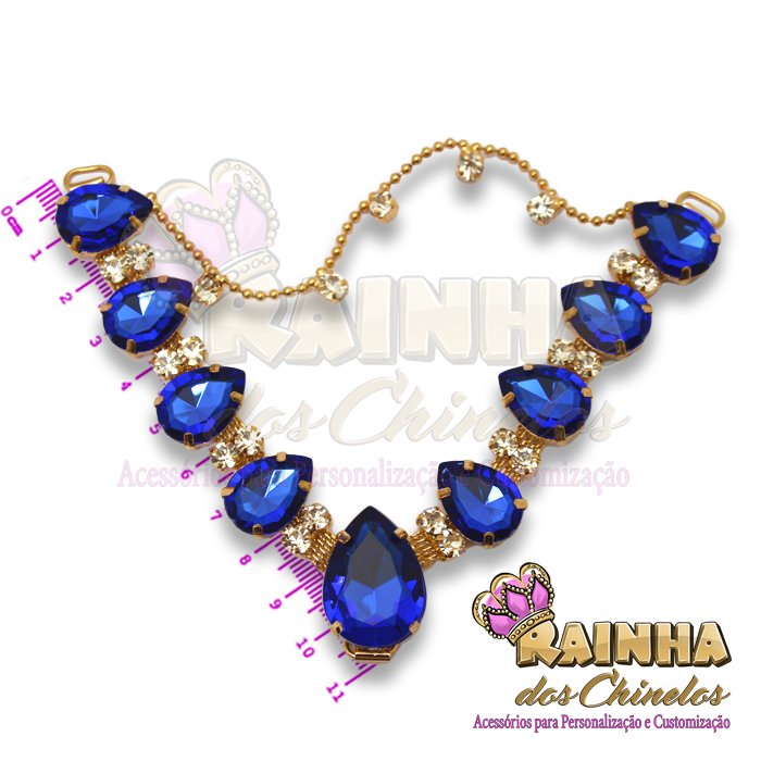 Cabedal em V Correntinha Love Azul Royal para Customizar e Personalizar Chinelos, Sandálias e Artesanatos em Geral. Crie modelos lindos, delicados e diferentes!