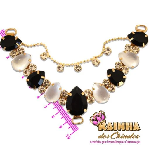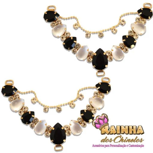 Cabedal em V Correntinha Love Mesclado Preto (Par) para Customizar e Personalizar Chinelos, Sandálias e Artesanatos em Geral. Crie modelos lindos, delicados e diferentes!
