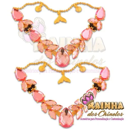Cabedal em V Correntinha Sereia Rosa (Par). Crie modelos maravilhosos!