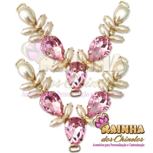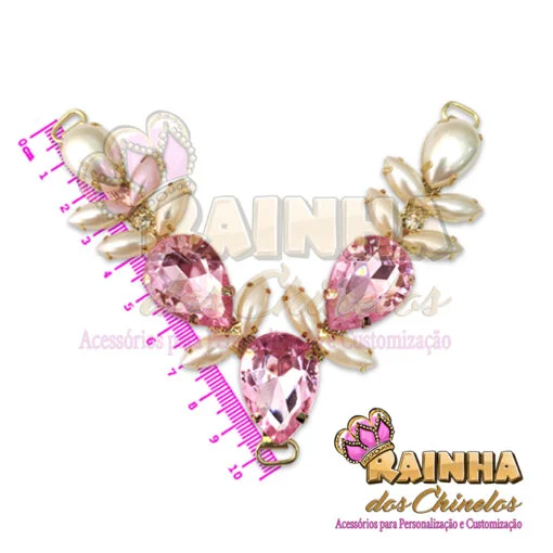 Cabedal em V Eloá Pedras Rosas para Customizar e Personalizar Chinelos, Sandálias e Artesanatos em Geral. Crie modelos lindos, delicados e diferentes!