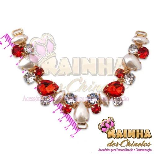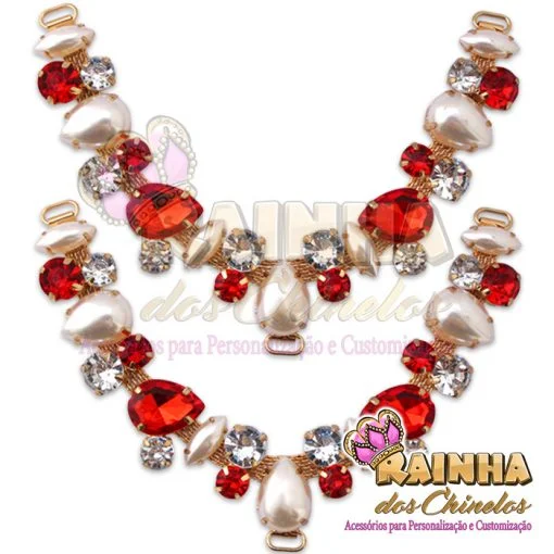 Cabedal em V Gotas Bolha Vermelho Perolado para Customizar e Personalizar Chinelos, Sandálias e Artesanatos em Geral. Crie modelos lindos, delicados e diferentes!