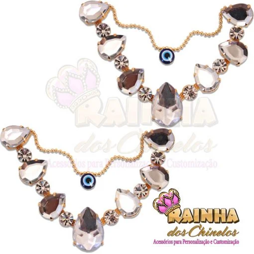 Cabedal em V Helena, Cristal, 1ª Linha (Par) para Customizar e Personalizar Chinelos, Sandálias e Artesanatos em Geral. Crie modelos lindos, delicados e diferentes!