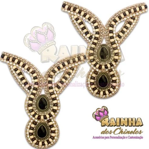 Cabedal Indiano Chaton e Miçangas Marrom Escuro e Creme