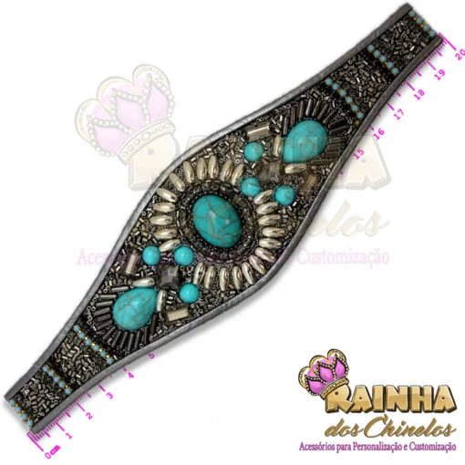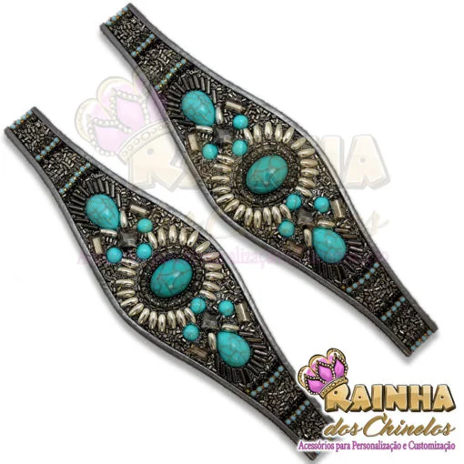 Cabedal Indiano Pulseira Pedras Azul Tiffany para Customizar e Personalizar Chinelos, Sandálias e Artesanatos em Geral. Crie modelos lindos, delicados e diferentes!