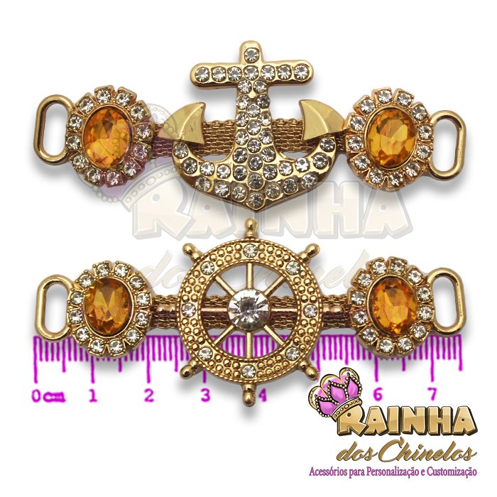 Cabedal Lateral Âncora e Leme Amarelo para Customizar e Personalizar Chinelos, Sandálias e Artesanatos em Geral. Crie modelos lindos, delicados e diferentes!