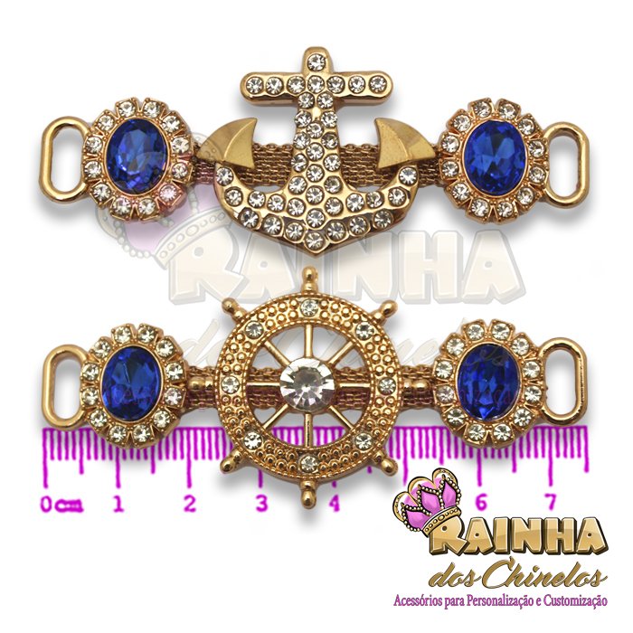 Cabedal Lateral Âncora e Leme Azul Royal para Customizar e Personalizar Chinelos, Sandálias e Artesanatos em Geral. Crie modelos lindos, delicados e diferentes!