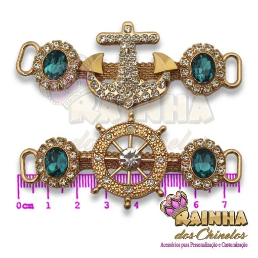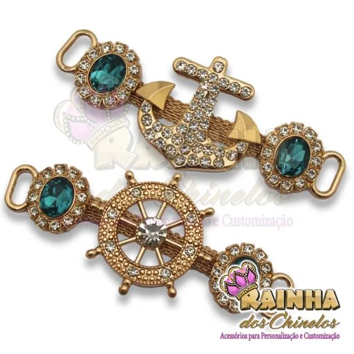Cabedal Lateral Âncora e Leme Azul Turquesa (Par)