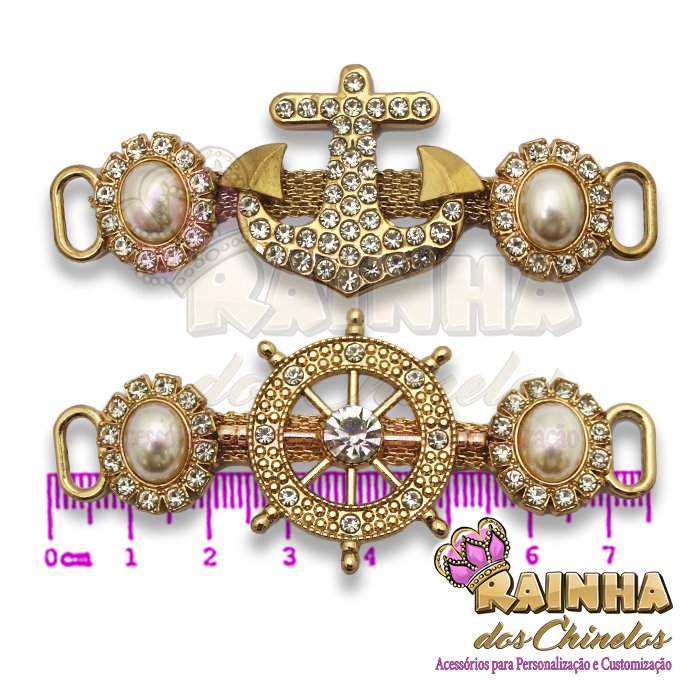 Cabedal Lateral Âncora e Leme Pérola para Customizar e Personalizar Chinelos, Sandálias e Artesanatos em Geral. Crie modelos lindos, delicados e diferentes!
