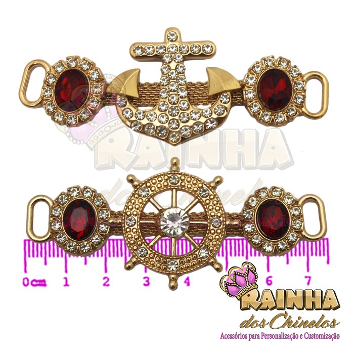 Cabedal Lateral Âncora e Leme Vermelho para Customizar e Personalizar Chinelos, Sandálias e Artesanatos em Geral. Crie modelos lindos, delicados e diferentes!