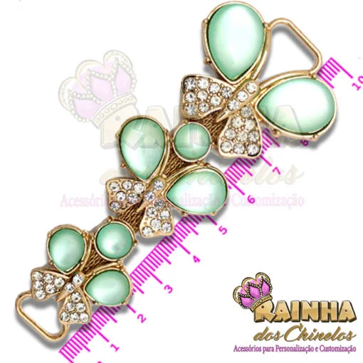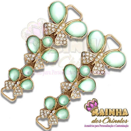 Cabedal Lateral Borboleta em Gotas Verde Água para Customizar e Personalizar Chinelos, Sandálias e Artesanatos em Geral. Crie modelos lindos, delicados e diferentes!