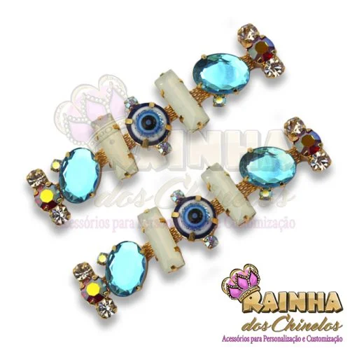 Cabedal Lateral Olho Grego Barras Azul Turquesa para Customizar e Personalizar Chinelos, Sandálias e Artesanatos em Geral. Crie modelos lindos, delicados e diferentes!