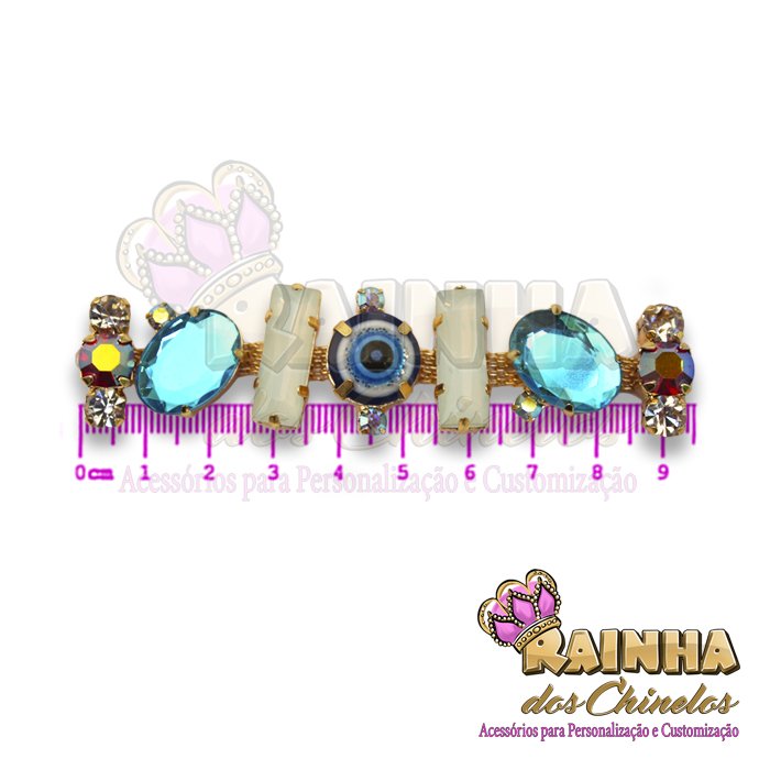Cabedal Lateral Olho Grego Barras Azul Turquesa para Customizar e Personalizar Chinelos, Sandálias e Artesanatos em Geral. Crie modelos lindos, delicados e diferentes!