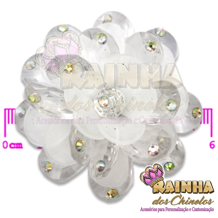 Flor de Acrílico Transparente com Strass de excelente qualidade. Não desbota!