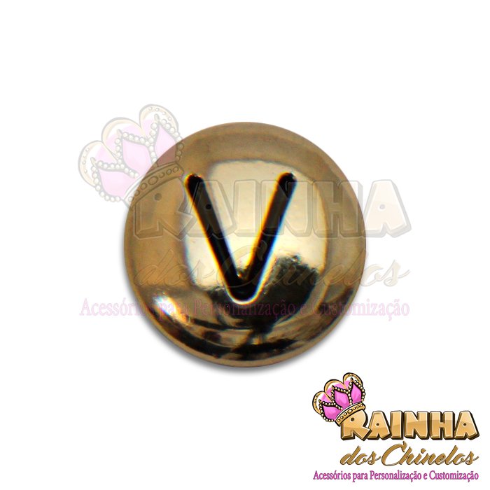 Letra Passante Redonda Dourada V para aplicação nas Correias dos Chinelos, Pulseiras ou Courinho.