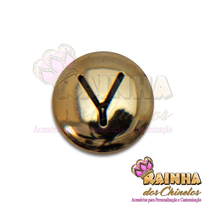 Letra Passante Redonda Dourada Y para aplicação nas Correias dos Chinelos, Pulseiras ou Courinho.