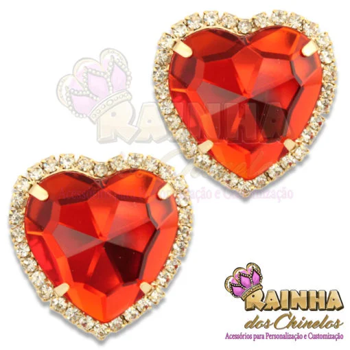 Piercing Coração Vermelho Contornado de Strass 1ª Linha (Par)