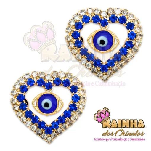Piercing Olho Grego Coração 1ª Linha (Par) para Customizar e Personalizar Chinelos, Sandálias e Artesanatos em Geral. Crie modelos lindos, delicados e diferentes!