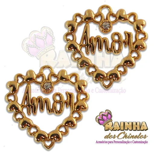 Pingente Dourado Coração Amor para Customizar e Personalizar Chinelos, Sandálias e Artesanatos em Geral. Crie modelos lindos, delicados e diferentes!