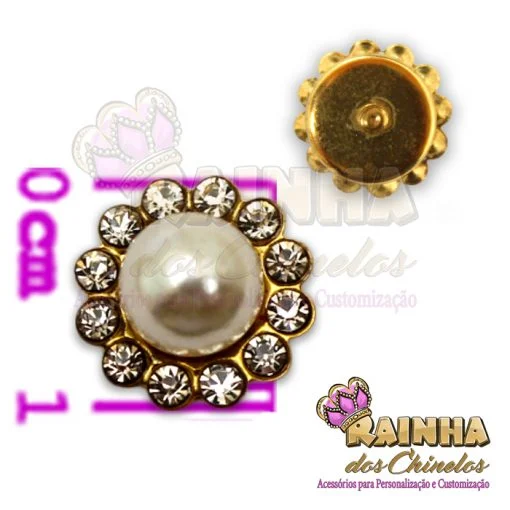 Cor: Dourado, com Strass Pérola.