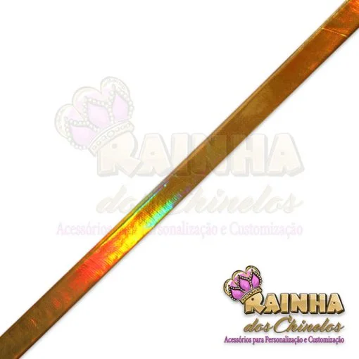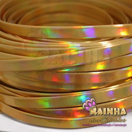 Tira de Couro Dourada Furta-Cor 8mm para trabalhos nas correias dos Chinelos Havaianas, aplique de Letras de Strass Passantes, Laços e Artesanatos em Geral. Útil e versátil, possibilitando customizações únicas!